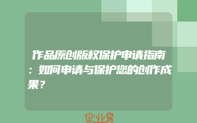 - 作品原创版权保护申请指南:如何申请与保护您的创作成果?