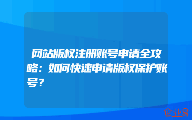 - 网站版权注册账号申请全攻略:如何快速申请版权保护账号?