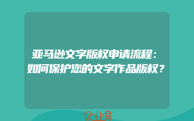 - 亚马逊文字版权申请流程:如何保护您的文字作品版权?