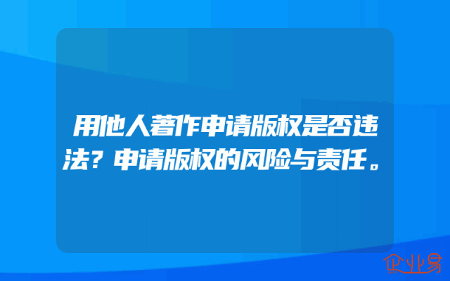 - 用他人著作申请版权是否违法?申请版权的风险与责任。