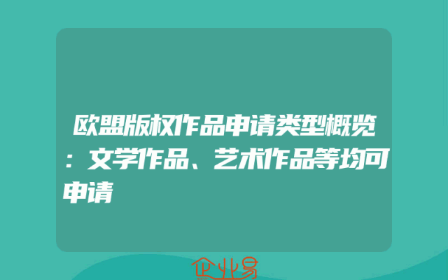 - 欧盟版权作品申请类型概览:文学作品、艺术作品等均可申请