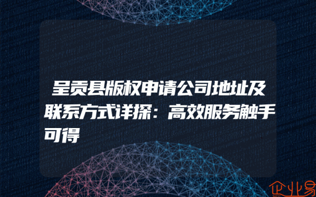 - 呈贡县版权申请公司地址及联系方式详探:高效服务触手可得