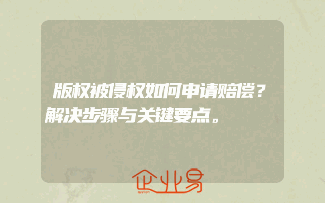 - 版权被侵权如何申请赔偿?解决步骤与关键要点。