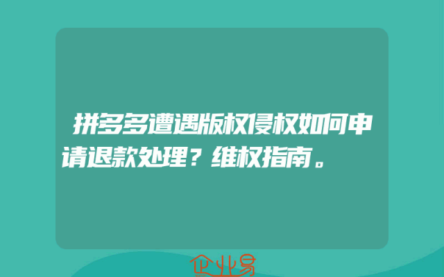 - 拼多多遭遇版权侵权如何申请退款处理?维权指南。