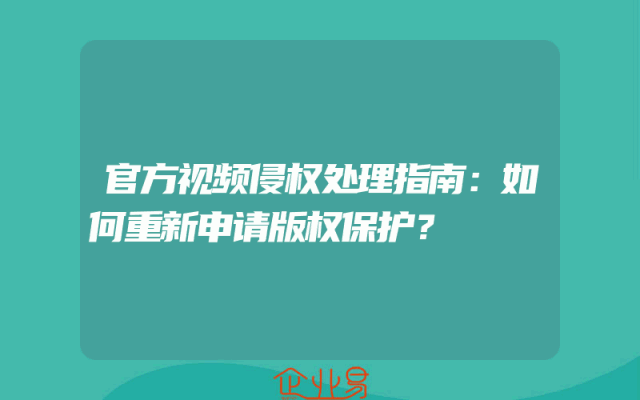 - 官方视频侵权处理指南:如何重新申请版权保护?
