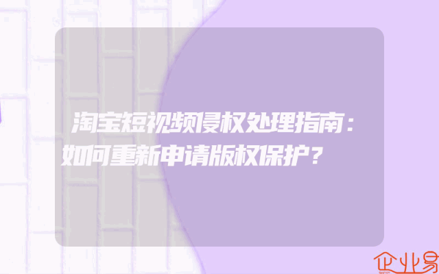 - 淘宝短视频侵权处理指南:如何重新申请版权保护?