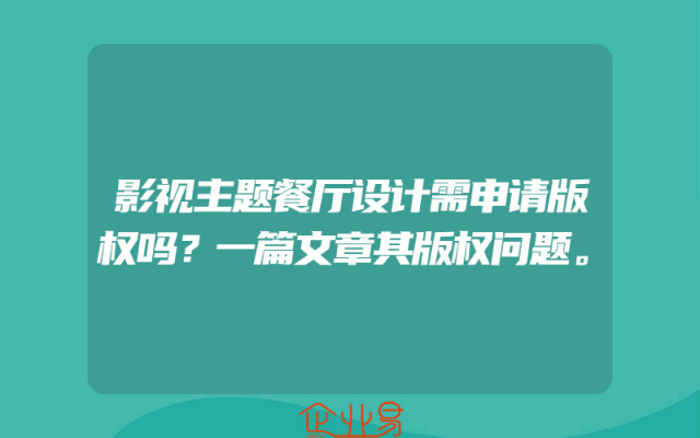 - 影视主题餐厅设计需申请版权吗?一篇文章其版权问题。