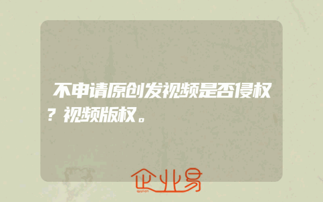 - 不申请原创发视频是否侵权?视频版权解析一、引言在当今互联网时代,短视频因其简洁直观、信息量大等特点成为大众获取信息的重要途径。随着短视频平台的兴起,关于视频版权的问题也日益受到关注。很多人对于不申请原创发视频是否构成侵权存在疑惑,本文将对此