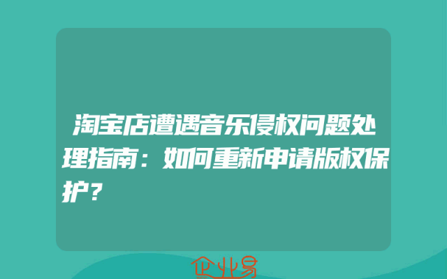 - 淘宝店遭遇音乐侵权问题处理指南:如何重新申请版权保护?