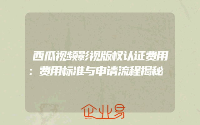 - 西瓜视频影视版权认证费用:费用标准与申请流程揭秘