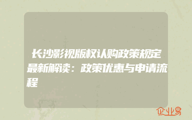 - 长沙影视版权认购政策规定最新解读:政策优惠与申请流程