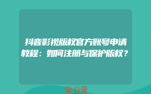 - 抖音影视版权官方账号申请教程:如何注册与保护版权?