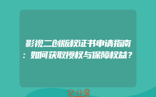 - 影视二次创作版权证书申请全攻略:如何获取版权证书?
