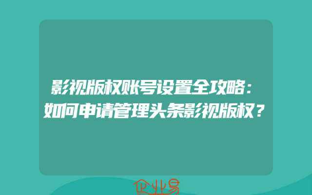 - 影视版权账号设置全攻略:如何申请管理头条影视版权?