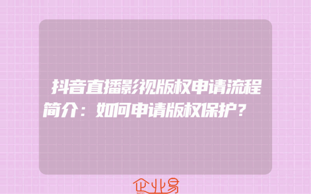 - 抖音直播影视版权申请流程简介:如何申请版权保护?