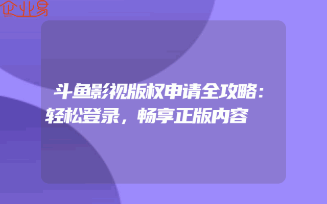 - 斗鱼影视版权申请全攻略:轻松登录,畅享正版内容一、斗鱼影视平台简介斗鱼影视作为领先的在线视频平台,致力于为广大用户提供丰富多样的正版内容。在数字媒体时代,版权保护尤为重要,斗鱼影视通过严格的版权管理制度,确保内容的合法性和独特性。二、版权申
