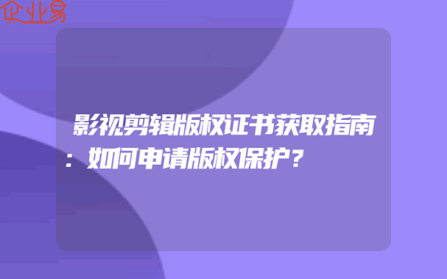 - 影视剪辑版权证书获取指南:如何申请版权保护?