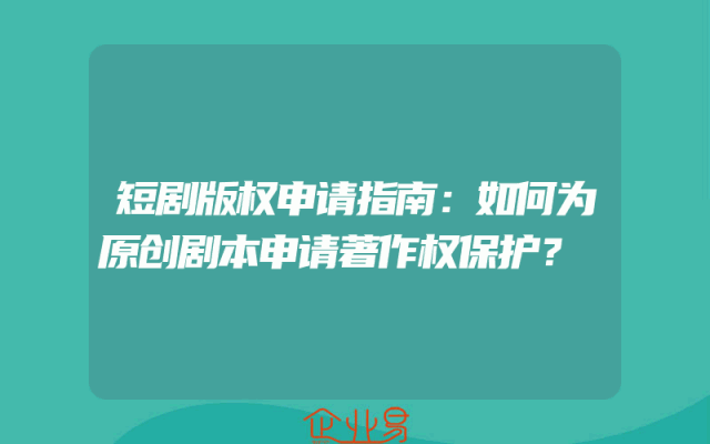 - 短剧版权申请指南:如何为原创剧本申请著作权保护?