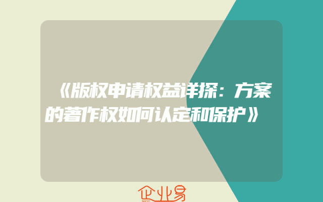 - 《版权申请权益详探:方案的著作权如何认定和保护》