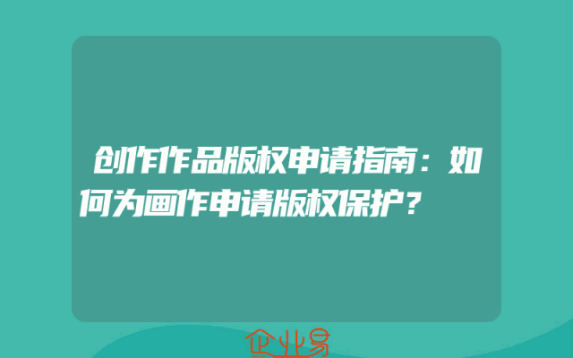 - 创作作品版权申请指南:如何为画作申请版权保护?