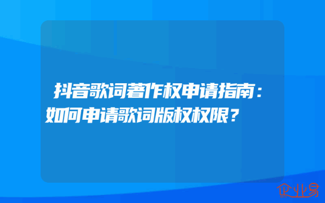 - 抖音歌词著作权申请指南:如何申请歌词版权权限?