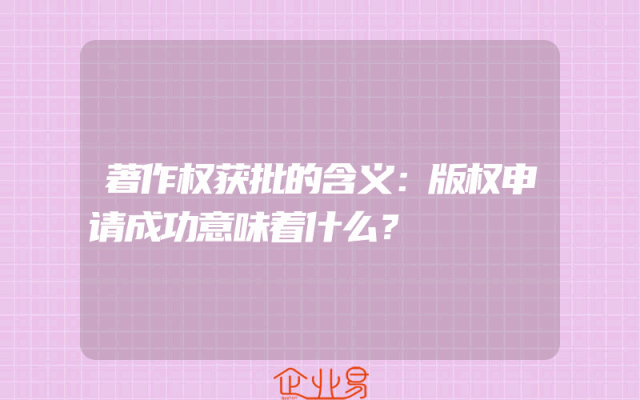 - 著作权获批的含义解析:版权申请成功意味着什么?一、著作权获批的基本概念著作权获批,意味着创作者对其创作的作品拥有了法律赋予的专有权利。在知识产权领域,著作权是一种重要的法律保障,它保护原创作品,如文学、艺术和科学作品等,防止他人未经许可擅自