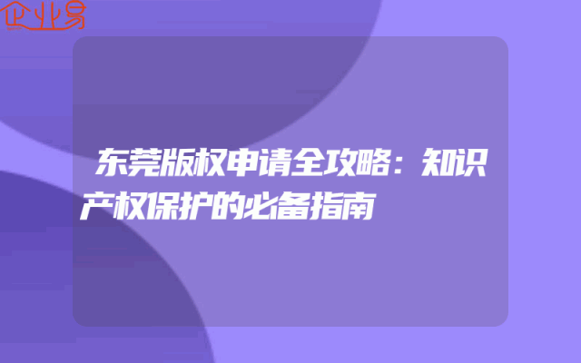 - 东莞版权申请全攻略:知识产权保护的必备指南