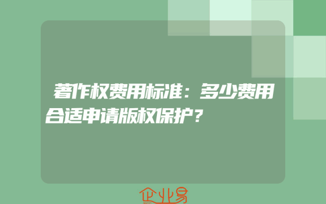 - 著作权费用标准:多少费用合适申请版权保护?