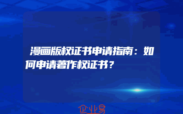 - 漫画版权证书申请指南:如何申请著作权证书?