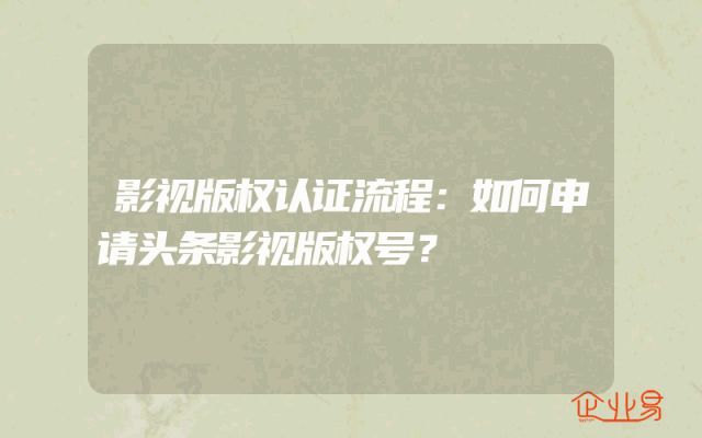 - 影视版权认证流程:如何申请头条影视版权号?