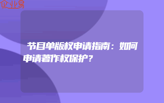 - 节目单版权申请指南:如何申请著作权保护?