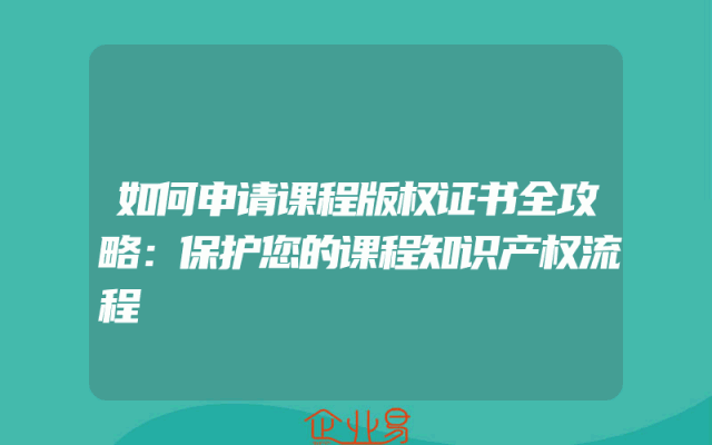 - 如何申请课程版权证书全攻略:保护您的课程知识产权流程一、了解课程版权的重要性在当今知识经济时代,保护课程知识产权显得尤为重要。课程版权不仅涉及到教育资源的分配问题,还关乎到创作者的劳动成果和个人利益。因此,为课程申请版权证书,确保课程内容的