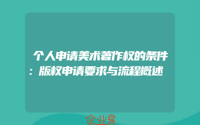 - 个人申请美术著作权的条件:版权申请要求与流程概述