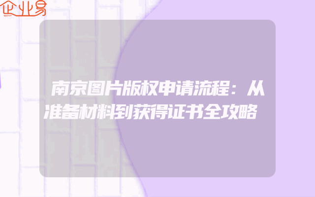 - 南京图片版权申请流程:从准备材料到获得证书全攻略