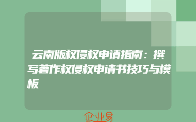 - 云南版权侵权申请指南:撰写著作权侵权申请书技巧与模板