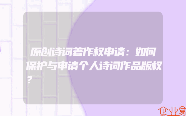 - 原创诗词著作权申请:如何保护与申请个人诗词作品版权?