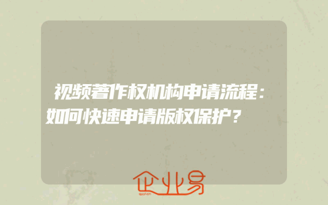 - 视频著作权机构申请流程:如何快速申请版权保护?