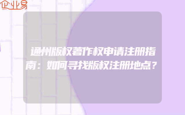 - 通州版权著作权申请注册指南:如何寻找版权注册地点?