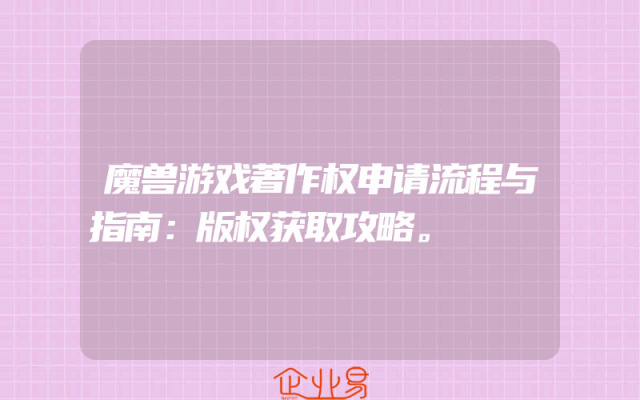 - 魔兽游戏著作权申请流程与指南:版权获取攻略。