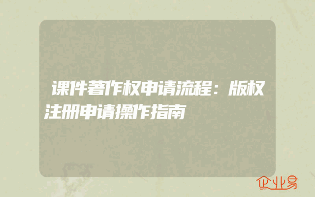 - 课件著作权申请流程详解:版权注册申请操作指南一、了解课件著作权及其重要性在当今数字化时代,课件作为教育教学内容的重要载体,其著作权保护显得尤为重要。课件著作权是指创作者对其创作的课件所享有的专有权利,包括复制权、发行权、租赁权、展览权、表演