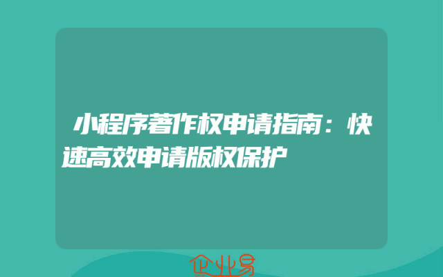 - 小程序著作权申请指南:快速高效申请版权保护一、了解著作权的重要性在当今数字化时代,知识产权保护尤为重要。对于开发者而言,小程序的源代码、设计界面以及其中的创意元素等都是其智力成果的体现,应得到充分的保护。著作权申请是保护这些智力成果的关键步