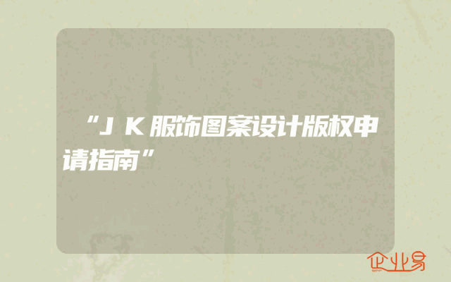 - JK服饰图案设计版权申请指南一、版权保护的重要性在创意产业蓬勃发展的当下,服饰图案设计作为文化创意的重要组成部分,其版权保护显得尤为重要。对于JK服饰图案设计而言,保护设计原创性、独特性,不仅是对设计师劳动成果的尊重,也是推动行业健康发展的
