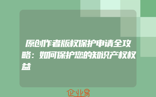 - 原创作者版权保护申请全攻略:如何保护您的知识产权权益