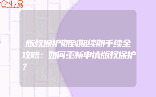 - 版权保护期到期续期手续全攻略:如何重新申请版权保护?