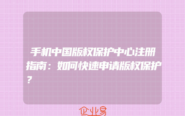 - 手机中国版权保护中心注册指南:如何快速申请版权保护?