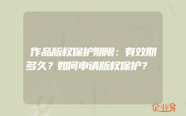 - 作品版权保护期限:有效期多久?如何申请版权保护?