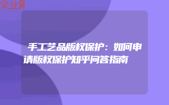 - 手工艺品版权保护:如何申请版权保护知乎问答指南