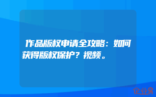 - 作品版权申请全攻略:如何获得版权保护?视频。