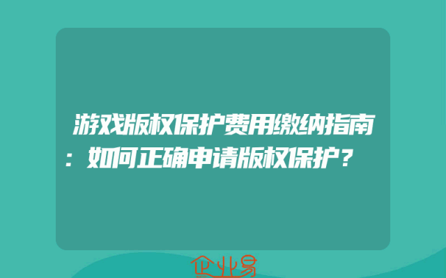 - 游戏版权保护费用缴纳指南:如何正确申请版权保护?