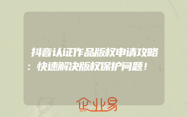 - 抖音认证作品版权申请攻略:快速解决版权保护问题!一、抖音认证作品版权的重要性随着抖音等短视频平台的飞速发展,越来越多的人开始在平台上创作和分享自己的作品。然而,这也带来了一系列版权问题。为了保护自己的创作成果,抖音认证作品的版权申请显得尤为